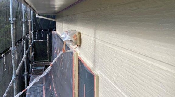 外壁の上塗り塗装|木更津市のM様宅にて塗り替え塗装中