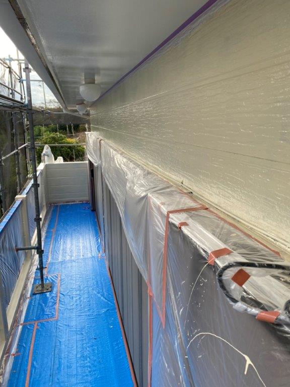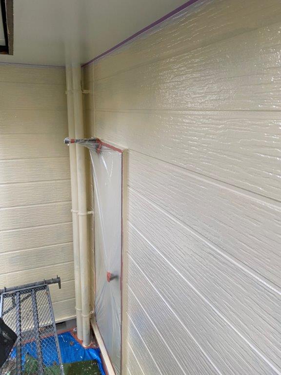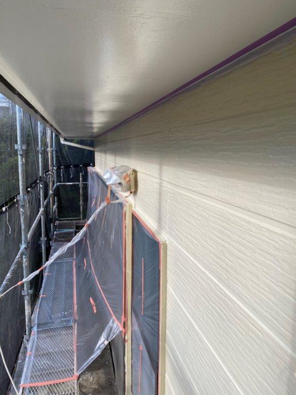 前日に外壁の中塗りが完了してますので、今日は最終的な仕上げとなる上塗り塗装を中心に作業を行いました!!