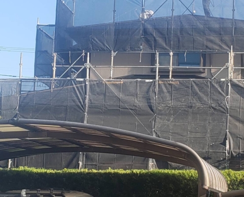 塗装工事後の足場の解体工事|千葉県木更津市のD様邸にて塗り替え塗装中