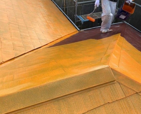 コロニアル屋根の中塗り塗装|木更津市のM様邸にて塗り替え塗装中