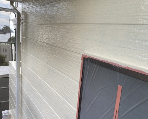 外壁の仕上げ塗装(上塗り2回目)|木更津市のE様邸にて塗り替え塗装中