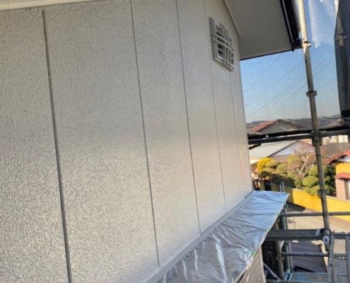 外壁の仕上げ塗装(上塗り2回目)|木更津市のE様邸にて塗り替え塗装中