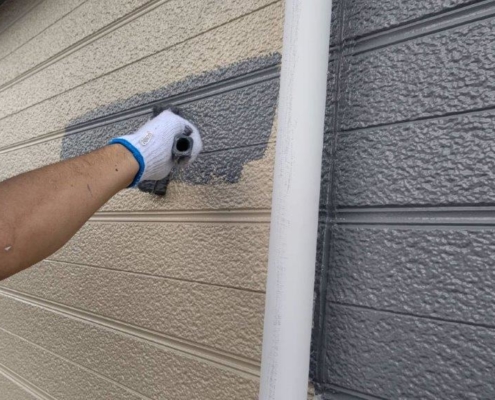 外壁の中塗り塗装(上塗り1回目)|千葉県君津市のH様宅にて塗り替えリフォーム中